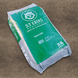 Fraktion 0-4 mm. Levereras i säck. Stenmjölet är dränerande och lätt att packa vilket gör det lämpligt att lägga över bärlagret närmast under plattorna. Vikt 20 kg.